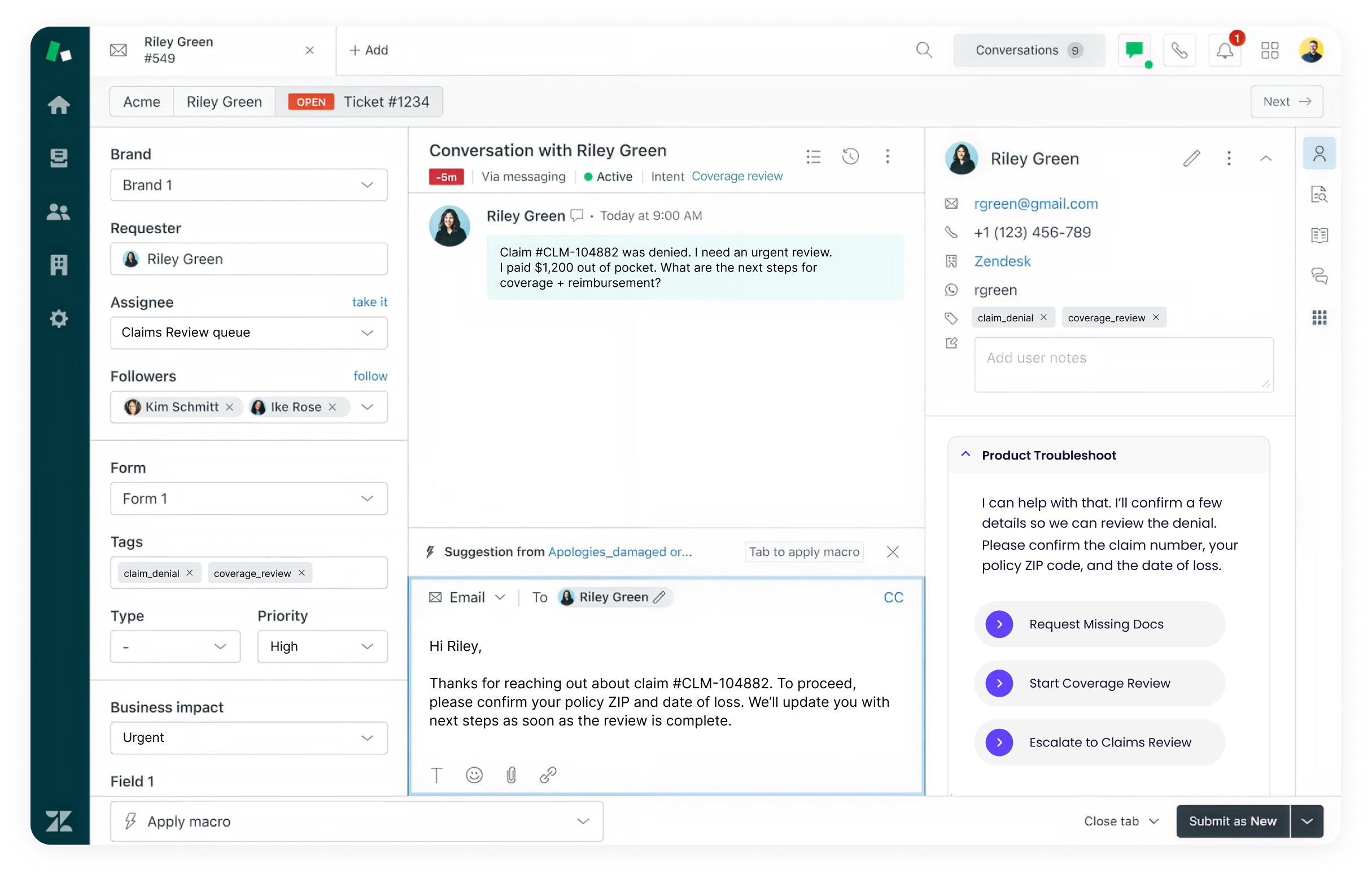 • Give agents step-by-step scripts and a copilot that interprets ticket context